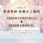 2025.12.02 お知らせ 冬休みのご連絡 oyakohirobaadmin ともえスクール事務局です。2025年12月27日(土)から2026年1月4日(日)は年末年始のお休みをいただきます。この期間中のお問い合わせは1月5日(月)以降順次お返事させていただきます。 会員の皆様におかれましては、心穏やかな時をお過ごしいただけますよう心よりお祈り申し上げます。