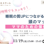 11/19(水)15:00〜【ママのための保健室】短時間でもスッキリ!睡眠の質UPにつながるヒントと頭のマッサージ
