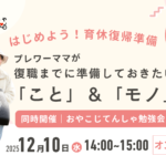 【無料・オンライン・見逃し配信あり】12/10(水)14:00〜はじめよう、育休復帰準備!プレワーママが復職までに準備しておきたい「こと」&「モノ」