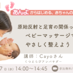 12/17(水)14:00〜『あんよ』からはじめる、赤ちゃんの発達サポート 原始反射と足育の関係って?ベビーマッサージでやさしく整えよう!