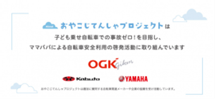 「おやこじてんしゃプロジェクト」は、子ども乗せ自転車での事故ゼロ!を目指し、パパ・ママによる自転車安全利用の啓発活動に取り組んでいます。オージーケー技研株式会社とPowerWomenプロジェクトの協同プロジェクトであり、趣旨に賛同いただいた関連メーカーや企業の協力をいただきながら活動しています。