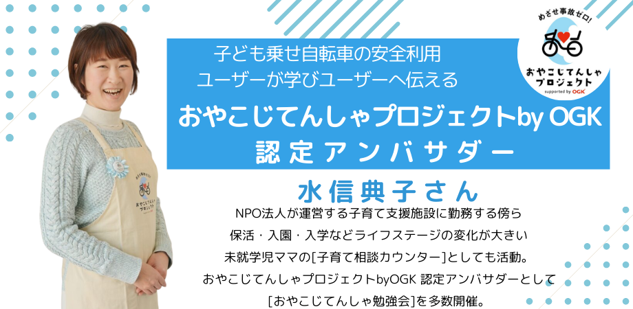 「おやこじてんしゃプロジェクト」は、子ども乗せ自転車での事故ゼロ!を目指し、パパ・ママによる自転車安全利用の啓発活動に取り組んでいます。オージーケー技研株式会社とPowerWomenプロジェクトの協同プロジェクトであり、趣旨に賛同いただいた関連メーカーや企業の協力をいただきながら活動しています。