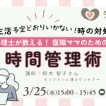 3/25(水)15:00〜新生活「予定どおりいかない」ときの対処法 心理士が伝える、復職ママのための時間管理法