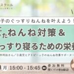 4/20(月)15:00〜親子のぐっすりねんねを叶えよう! 初夏に向けたねんね対策&ぐっすり寝るための栄養