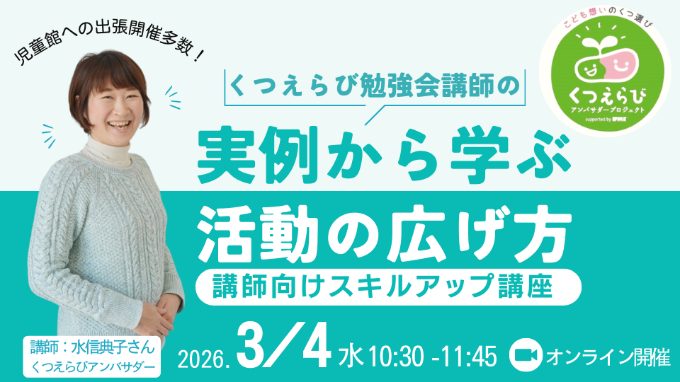 TAG 1才 【スキルアップ講座】くつえらび勉強会講師の実例から学ぶ、活動の広げ方\くつえらびアンバサダーは参加無料・オンライン開催/ 2026.01.29 イベント KANAKO ともえスクール 2/19(木)15:00〜 ママが知っておきたいデリケートゾンケア〜産後にはじめる簡単セルフケアの方法と効果 2026.01.27 親子ひろば UCHIMURA ともえスクール 2/10(木)14:00〜赤ちゃんの体も凝るんです~姿勢ケア育児で子育てを楽に~【入門編】 2026.01.27 親子ひろば UCHIMURA ともえスクール 2/10(火)10:00〜かわいい成長記録を残せるママになろう♡ 足育にもなる足形アートの楽しみ方 2026.01.27 親子ひろば UCHIMURA ともえスクール 2/24(火)10:00〜【作業療法士さんの足育タイム】 はじめてのくつえらび~ファーストシューズ選びのポイント 2026.01.27 親子ひろば KANAKO ともえスクール 2/5(木)15:00〜やさしいふれあいで、心とカラダの土台を育む わらべうたで親子ヨガ 2026.01.25 親子ひろば UCHIMURA ともえスクール 2/6(金)15:00〜 選び方や読み方は?はじめての英語絵本&おうちで楽しむ英語育児のワンポイントレッスン 2026.01.22 親子ひろば OGATA ともえスクール 2/3(火)14:00〜 子育てのイライラ解消&親子コミュニケーションの基礎づくりファーストサイン体験会 2026.01.22 親子ひろば OGATA ともえスクール 【オンライン・参加無料】復職準備講座_保育園が決まったらすぐすること\申込者に見逃し配信あり/ 2026.01.21 イベント UCHIMURA ともえスクール 1/30(金)14:00〜おうち英語の第一歩!やさしい英語で楽しむベビーマッサージ 2025.12.26 親子ひろば OGATA ともえスクール 1…16171819202122…26